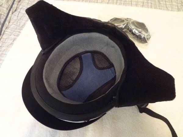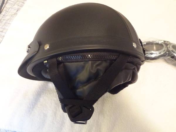 A brand new unused scooter helmet with goggles and leather scarf which is detachable. I purchased this on eBay two years ago but decided that my motorcycle/scooter riding days were over. The purchase price was $39.98 U.S. = $55 Cnd. There are several for sale on eBay from $39.98 - $49.99 U.S. I consider the size medium but it should be tried on before buying. $30 or reasonable offer.